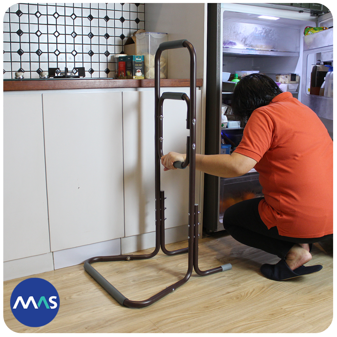 Kuat dan stabil, MAS Universal Portable Lift Assist memiliki 3 pegangan penyangga dengan busa yang nyaman, membantu pengguna saat ingin berdiri, duduk, bangkit dari lantai, membungkuk atau berjongkok untuk mengambil sesuatu.