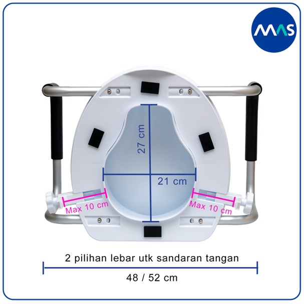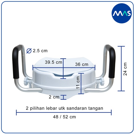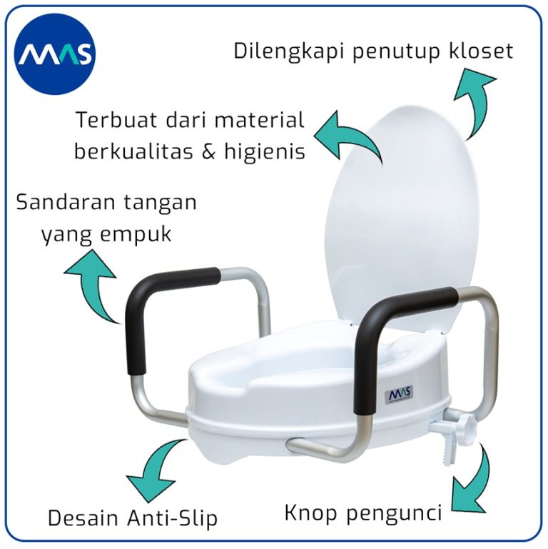 MAS Toilet Seat Riser adalah peninggi dudukan kloset, yang dapat digunakan oleh lansia, pasien pasca operasi, wanita hamil, atau individu dengan keterbatasan mobilitas, untuk memudahkan duduk dan berdiri dari kloset tanpa harus menekuk lutut terlalu dalam.